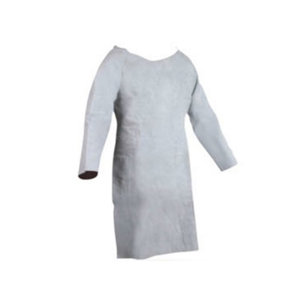AVENTAL EM RASPA TIPO BARBEIRO, O AVENTAL CONFECCIONADO EM RASPA FOI PROJETADO PARA A PROTEÇÃO DO TRONCO DO USUÁRIO CONTRA AGENTES ABRASIVOS, ESCORIANTES E TÉRMICOS, COMO PROCESSOS DE SOLDAGEM OU SEMELHANTES. COM MANGAS LONGAS E FECHAMENTO PELAS COSTAS.