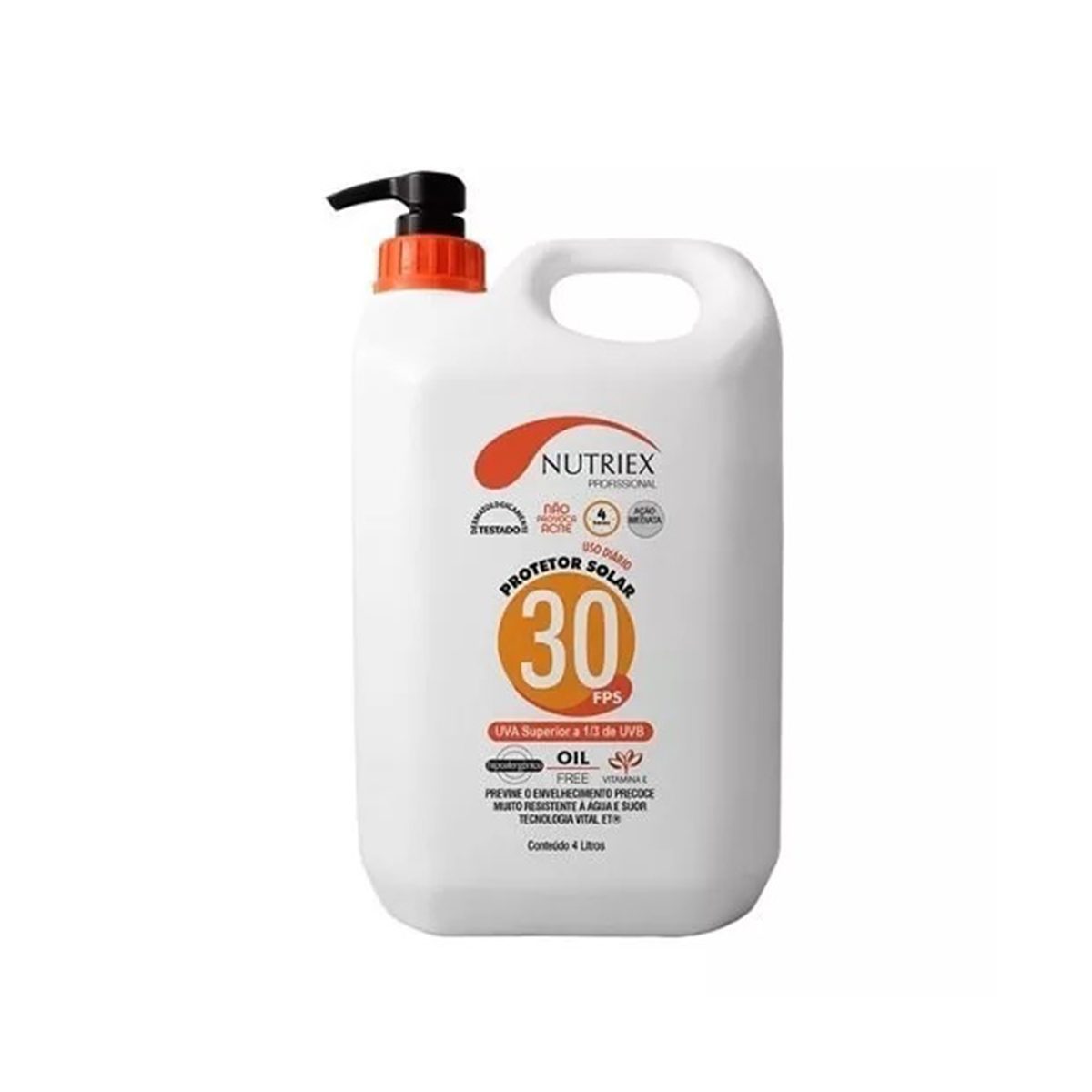 O PROTETOR SOLAR 4 LITROS NUTRIEX FPS 30 COM DOSADOR OFERECE MÁXIMA PROTEÇÃO À PELE CONTRA OS EFEITOS NOCIVOS DA RADIAÇÃO SOLAR UVA E UVB E TAMBÉM DAS RADIAÇÕES PROVENIENTES DE SOLDAS ELÉTRICAS E DEMAIS EQUIPAMENTOS QUE EMITAM ESTE TIPO DE RADIAÇÃO, AJUDANDO A PREVENIR AS QUEIMADURAS. SUA FÓRMULA É ENRIQUECIDA COM VITAMINA E, PROPORCIONANDO HIDRATAÇÃO E COMBATE AO ENVELHECIMENTO PRECOCE DA PELE.