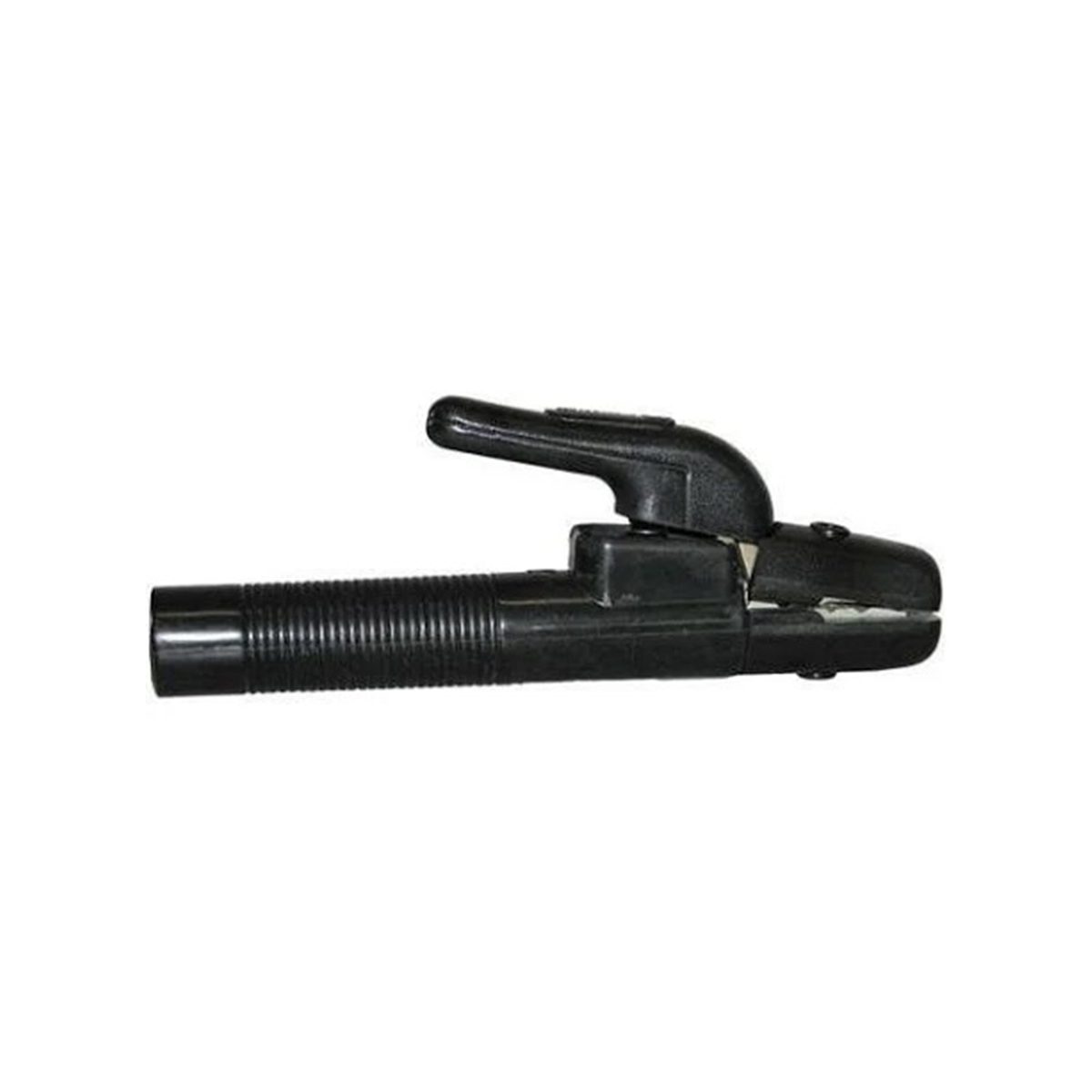 PORTA ELETRODOS DA LINHA LEDAN FABRICADO EM LIGA DE COBRE ESPECIAL DE ALTA CONDUTIBILIDADE COM ISOLADORES E ALAVANCA EM TERMOFIXO FENÓLICO REFORÇADO COM FIBRA DE VIDRO, PUNHO EM FENOLITE DE GRANDE DURABILIDADE E MOLA TOTALMENTE ISOLADA.